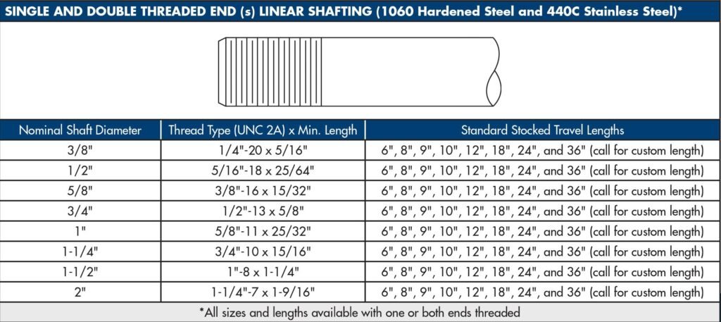 IDA Motion provides standard threaded ends for one or both sides of any bearing linear shafting we supply regardless of type or material.